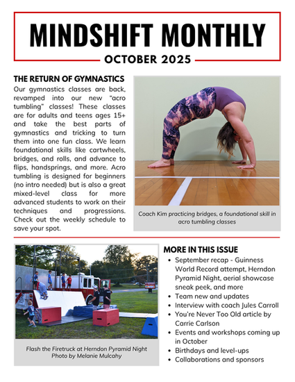 Join the DC Metro Parkour community for Metro Jam 2025 on October 18-19. Jam at Gateway Park, home of Beast Coast, one more time before it's torn down for renovations in 2026. MindShift Gym will be offering our facility as an indoor venue on Saturday.
